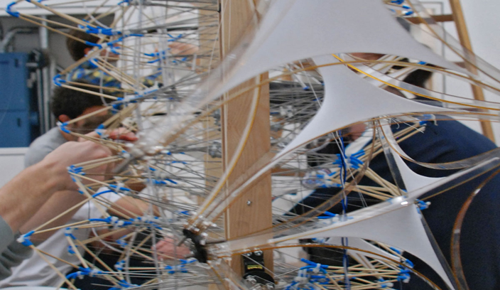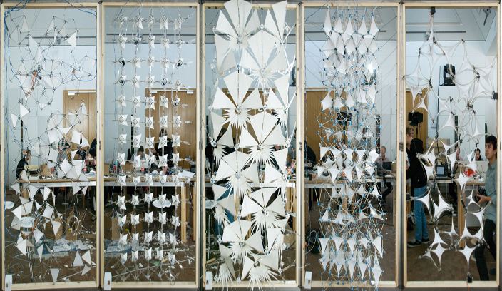 The workshop explored responsive strategies and systems, which was in constant interaction with its physical environment. Cross-disciplinary master students within the field of architecture and mediolog were to investigated and created physical and digital kinetic models and systems enabling environmental adaptation with embedded sensoring, translation of information and actuation. The workshop was an intense series of lectures and tooling sessions, with successive experiments, leading to responsive models with growing complexity in terms of analytical performance and mediated expressions